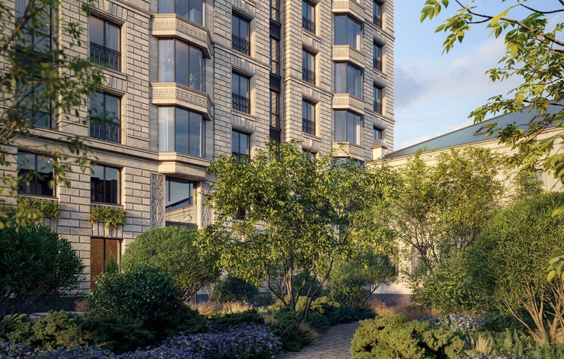 Новый клубный дом в Хамовниках, недалеко от Саввинской набережной. Выполнен в стиле неоклассической архитектуры известным питерским зодчим Евгением Герасимовым. Роскошный дизайн лобби дома разработал Олег Клодт, автор с мировыми реноме в сегменте элитной недвижимости. Эллинистическая эстетика в стиле beaux-arts в виде декоративного барельефа и греческих колон добавляет торжественности центральному входу в жилой комплекс. Пространство лобби будет украшено предметами искусства, картинами современных художников, а жемчужиной дома станет собственная библиотека из прижизненных изданий великих Русских авторов живших в Хамовниках в 18-19 веке.