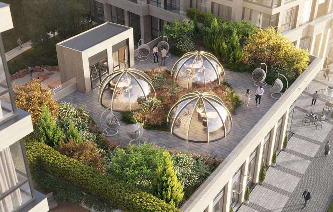 Архитектуру квартала формируют четыре современные башни с большими террасными уступами. Элегантное лобби выполнено в стилистике  роскошного отеля. Высокие потолки, изысканная мебель и детали интерьера создают респектабельное и по-домашнему уютное пространство, насыщенное удобной инфраструктурой – к услугам резидентов рестораны авторской кухни, салоны красоты, винный бутик и другие важные сервисы, поддерживающие статус дома и высокий уровень комфорта. Для жителей предусмотрены высокотехнологичный паркинг и функциональные кладовые. Территория квартала является концептуальным продолжением уникальной заповедной зоны, у границ которой располагается жилой комплекс. Пешие променады в сочетании с декоративными насаждениями и фонтанами настраивают на гармоничное соседство с природой и созерцание красоты.