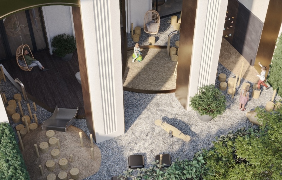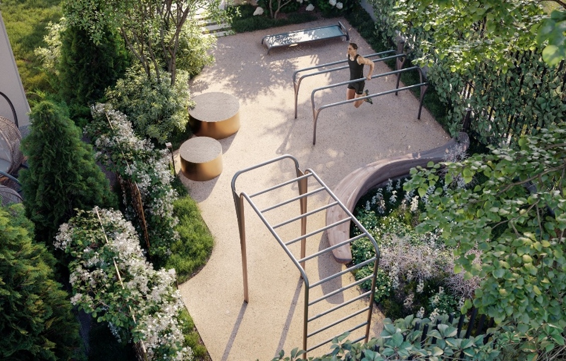 внутренний сад с детскими и спортивными площадками, и фитнес, и общественные