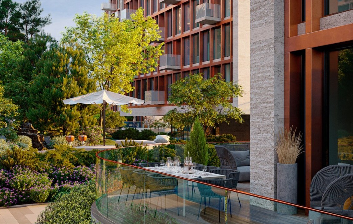 в примыкающий парк. Во многих квартирах спроектированы широкие террасы и патио