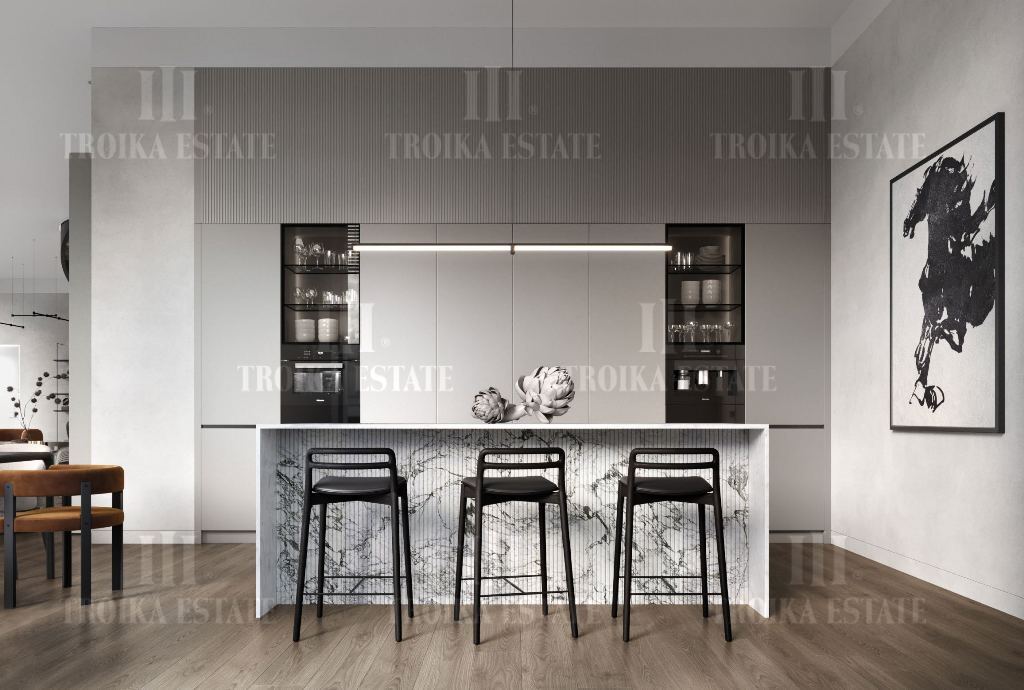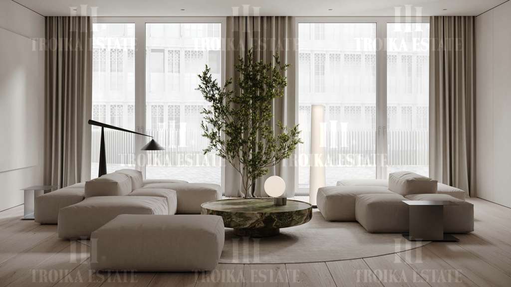 Апартамент в особняке Орден предлагается с высококачественной отделкой из натуральных материалов. Элегантные детали интерьера и мягкая мебель подобраны по индивидуальному дизайн-проекту. Установлена система «Умный дом», позволяющая дистанционно управлять освещением, шторами, отоплением, а также следить за микроклиматом. Планировочное решение включает 2 спальни с ванными комнатами, кухню-гостиную, гостевой санузел, постирочную. Панорамные окна выходят на внутренний двор.