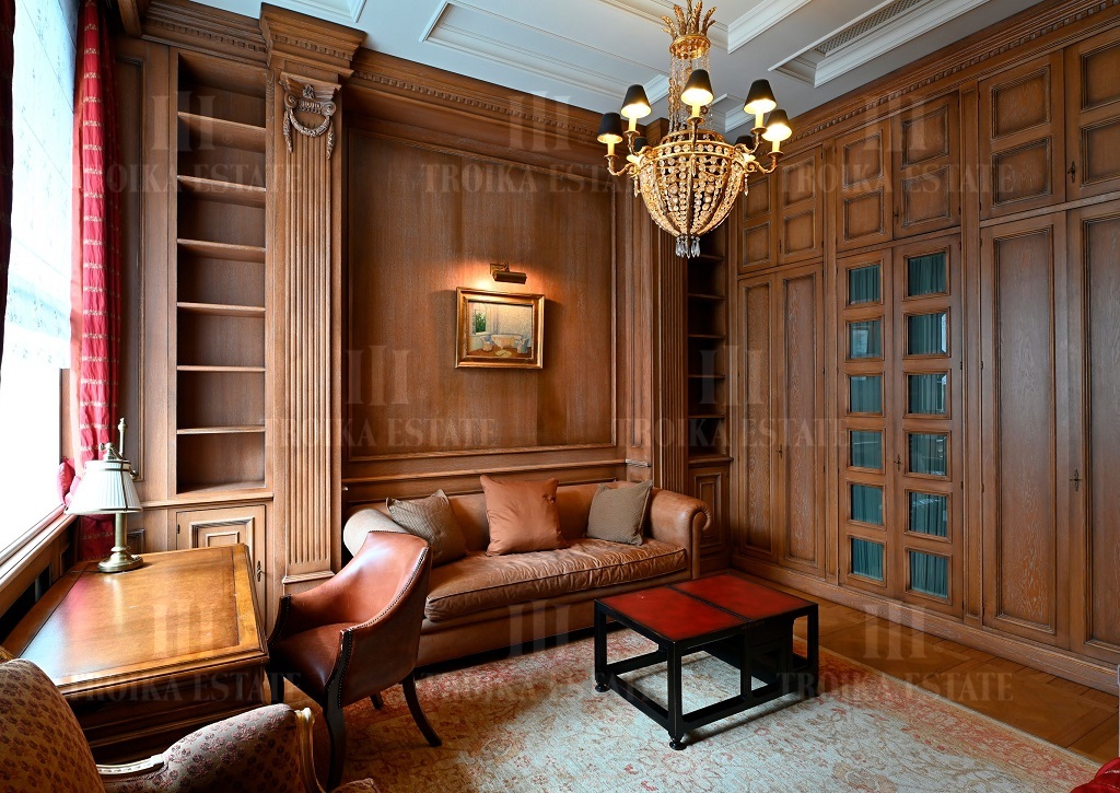 Для ценителей американской классики! Сдается квартира, декорированная антикварными предметами искусства и мебели. Квартира расположена на 2 этаже с видами на Бельгийское посольство и внутренний двор. Планировочное решение включает: гостиную с декоративным камином, кухню-столовую, мастер-блок со своим санузлом и гардеробной, спальню, кабинет, caнузел. Выполнена комплексная реконструкция инженерных систем, установлены приточно-вытяжная вентиляция, канальное кондиционирование.