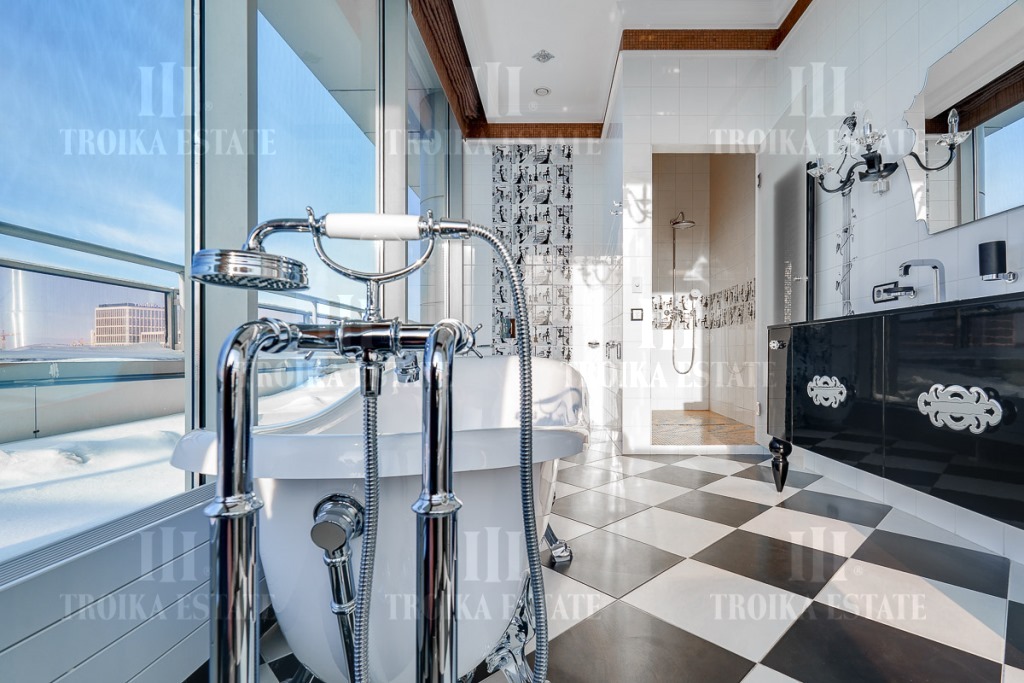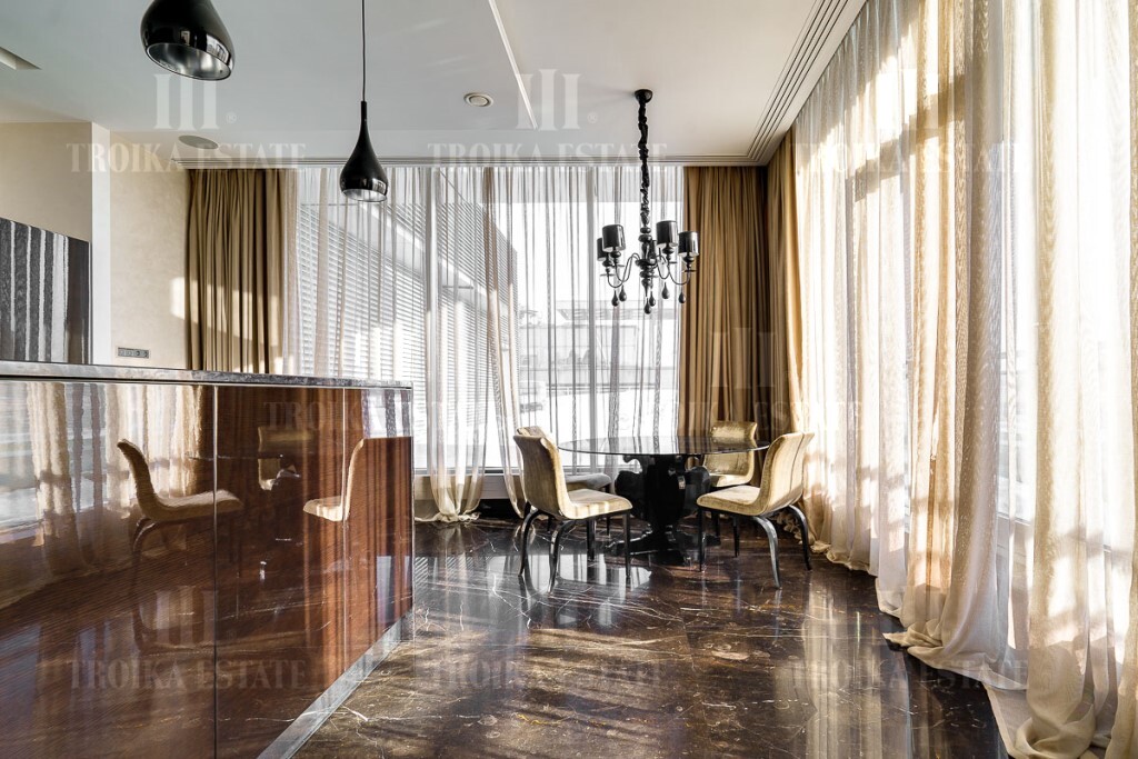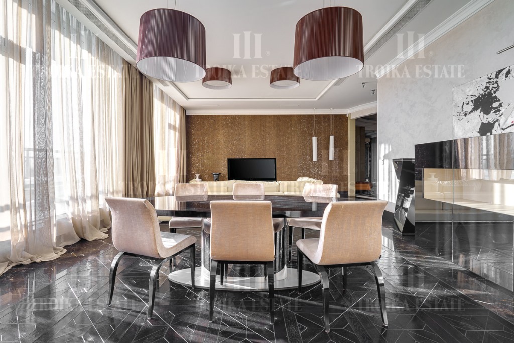 Снова в продаже! Пентхаус с большой террасой и эксклюзивным дизайном в ориентальном стиле. Уникальное планировочное решение включает просторную гостиную 50 м2, кухню-столовую более 30м, кабинет, 4 спальни с ванными комнатами, комнату для няни, SPA зону с комнатой для йоги и хамам. Панорамные окна выходят на 4 стороны света. Терраса проходит по всему периметру пентхауса.