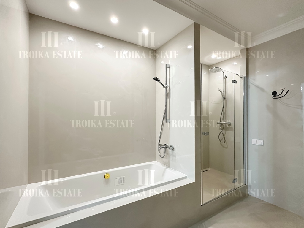 высокие двери сделаны на заказ. Ванные комнаты оборудованы сантехникой Grohe. В