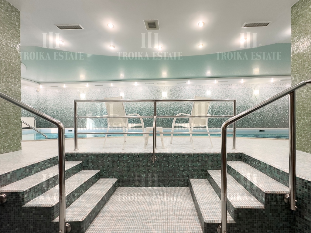 спортивный комплекс с бассейном и тренажерным залом, роскошное лобби с камином
