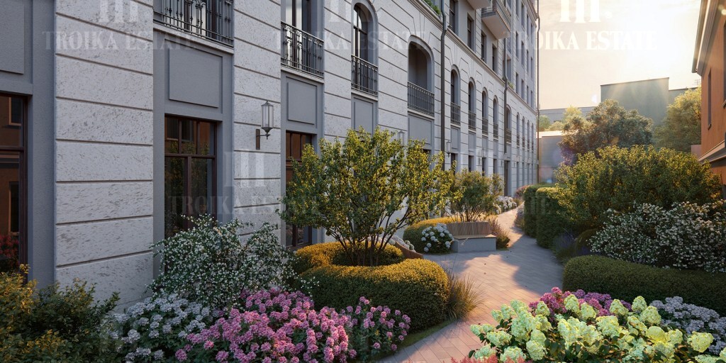 Роскошный пентхаус общей площадью 392,2 кв. м. расположен на 6-м этаже. Арочные окна, элегантный сферический эркер и высокие 4-метровые потолки создают уникальное пространство, наполненное светом. Продуманная и изысканная планировка, в которой разделены общие и приватные зоны позволит всем членам семьи совмещать свои сценарии жизни. Окна пентхауса выходят на все стороны света, дровяной камин в гостиной наполнит зимние вечера теплом и уютом, подчеркнет престиж и статус семьи. Потрескивание дров создает спокойную и романтичную атмосферу в доме. Расположенная на крыше личная терраса площадью 185 кв. м. с неповторимыми видами делает пентхаус идеальным местом для комфортной и по-настоящему роскошной жизни. «Чистые Пруды» - исторический дом на 34 квартиры в уникальном атмосферном районе Москвы, в 50 метрах от Чистых прудов.  Дом расположен в глубине квартала, в окружении тихих переулков - в полной тишине и приватности старого московского двора. Только для жителей будет работать бесплатный фитнес по стандарту Fit Lab с зонами кардио, силовых тренажёров, свободных весов и функционального тренинга. Для детей создана игровая комната по стандарту Kid's Lab. Есть свой всесезонный двор-сад. В Lounge выделены каминная, патио, зона для проведения мастер-классов и настольных игр.