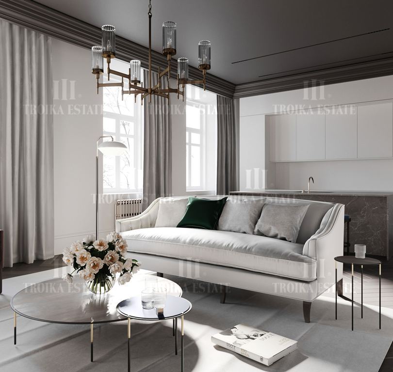 Видовой апартамент с террасой 96 кв.м., расположен в особняке Орден. Предлагается с