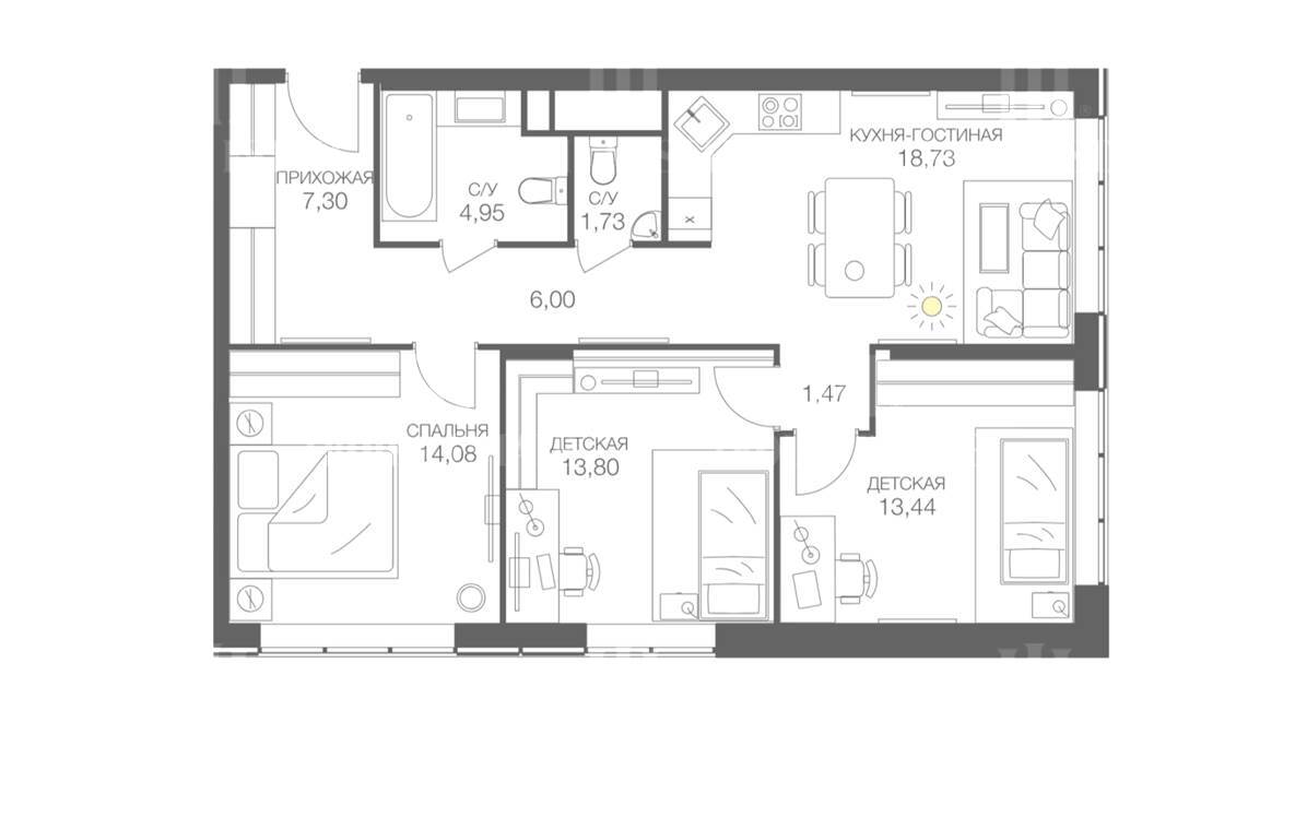 Видовая, 4-х комнатная квартира двусторонней ориентации. Без отделки. Функциональная планировка позволяет сделать три спальни, гостевую зону с кухней, два санузла, прихожую. Окна выходят на Москва-Сити. Современный многофункциональный квартал находится в Центральном