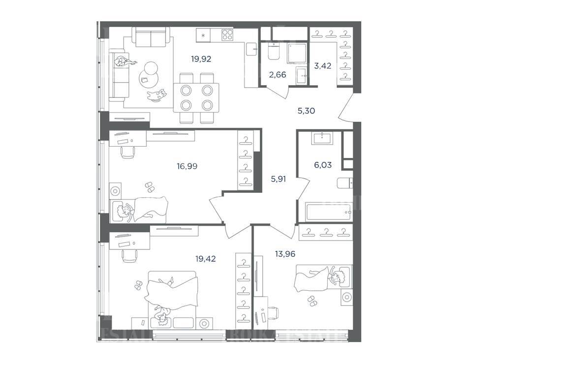 Видовая 4-х комнатная квартира двусторонней ориентации. Окна выходят на Москва-Сити и в сторону набережной Москва-реки. Предлагается без отделки. Функциональная планировка позволяет сделать три спальни, гостевую зону с кухней, два совмещенных санузла, прихожую с гардеробной. Современный многофункциональный квартал находится в Центральном административном округе Москвы. Полностью построен. На территории комплекса создана комфортная среда с благоустроенными дворами, детскими и спортивными площадками, а также объектами социальной и коммерческой инфраструктуры, обеспечивающими высокий уровень жизни для каждого резидента. В Headliner есть всё необходимое для комфортной жизни: кафе, магазины, фитнес-клуб, детские площадки и зоны отдыха. В шаговой доступности - школы, детские сады, медицинские центры и торговые комплексы. Благоустроенные дворы без машин и зелёные зоны создают уютную и безопасную атмосферу. В холлах обустроены дизайнерские лаунж-зоны с каминами и местами для отдыха. Для жителей предусмотрены колясочные и гостевые уборные. Во дворах квартала Headliner реализован комплексный подход к безопасности: концепция «дворы без автомобилей», пропускная система доступа в подъезд, видеонаблюдение, круглосуточная охрана, консьерж-сервис.