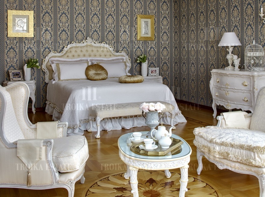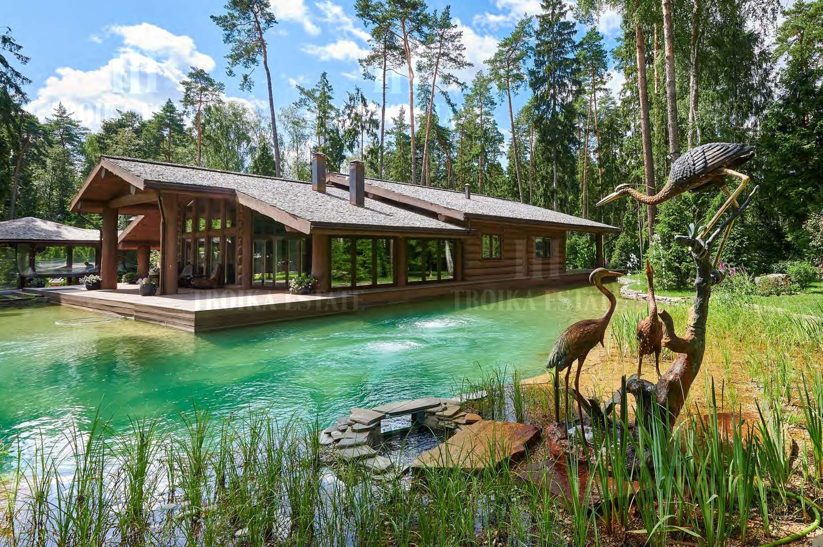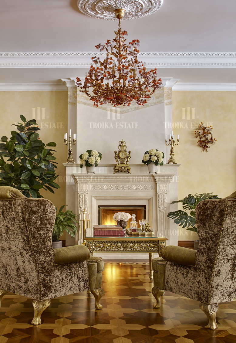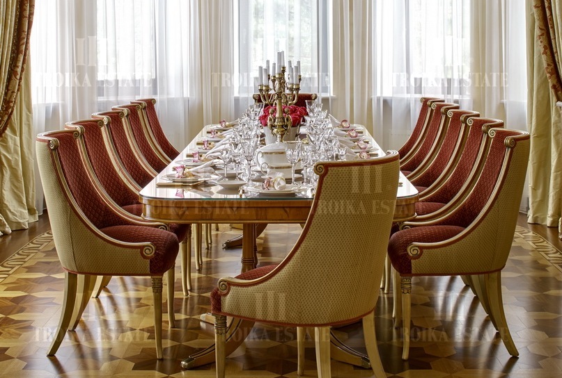 Предлагается роскошный дом на лесном участке в приватном поселке на 6 домов. В доме выполнена дизайнерская отделка в классическом стиле. Мебель российских и итальянских премиальных марок. Великолепная планировка дома включает 4 спальни со своими гардеробными и ванными комнатами, кабинет, кухню, столовую-гостиную с выходом на террасу, каминный зал, бассейн с зоной тренажеров, сауну с холодной купелью, бильярдный зал, сигарную с винотекой, салон красоты. Для автомобилей предусмотрен гараж в контуре дома, гостевая парковка, паркинг для персонала. Отдельно на участке дом для персонала, баня 350 м2, закрытая беседка с мангалом, оборудованная зона барбекю. Участок с вековыми соснами занимает 5,35 гектара, из них 32 сотки в собственности, и 5,03 гектар в аренде. В поселке работает охрана и видеонаблюдение.