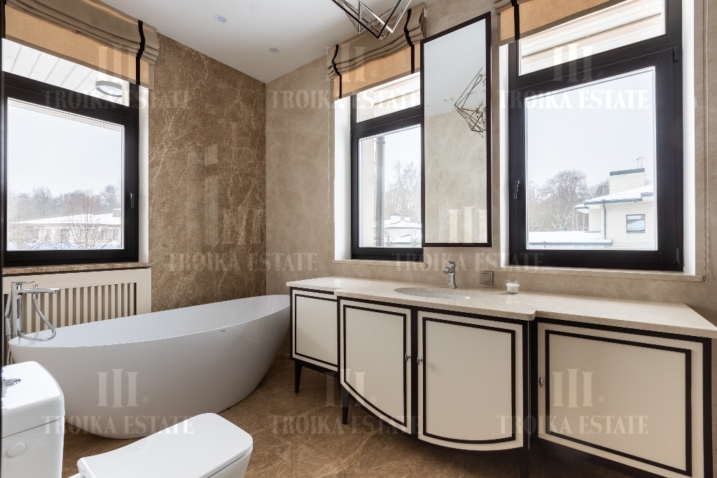 этаже: 3 спальни с ванными комнатами и гардеробными. На цокольном этаже