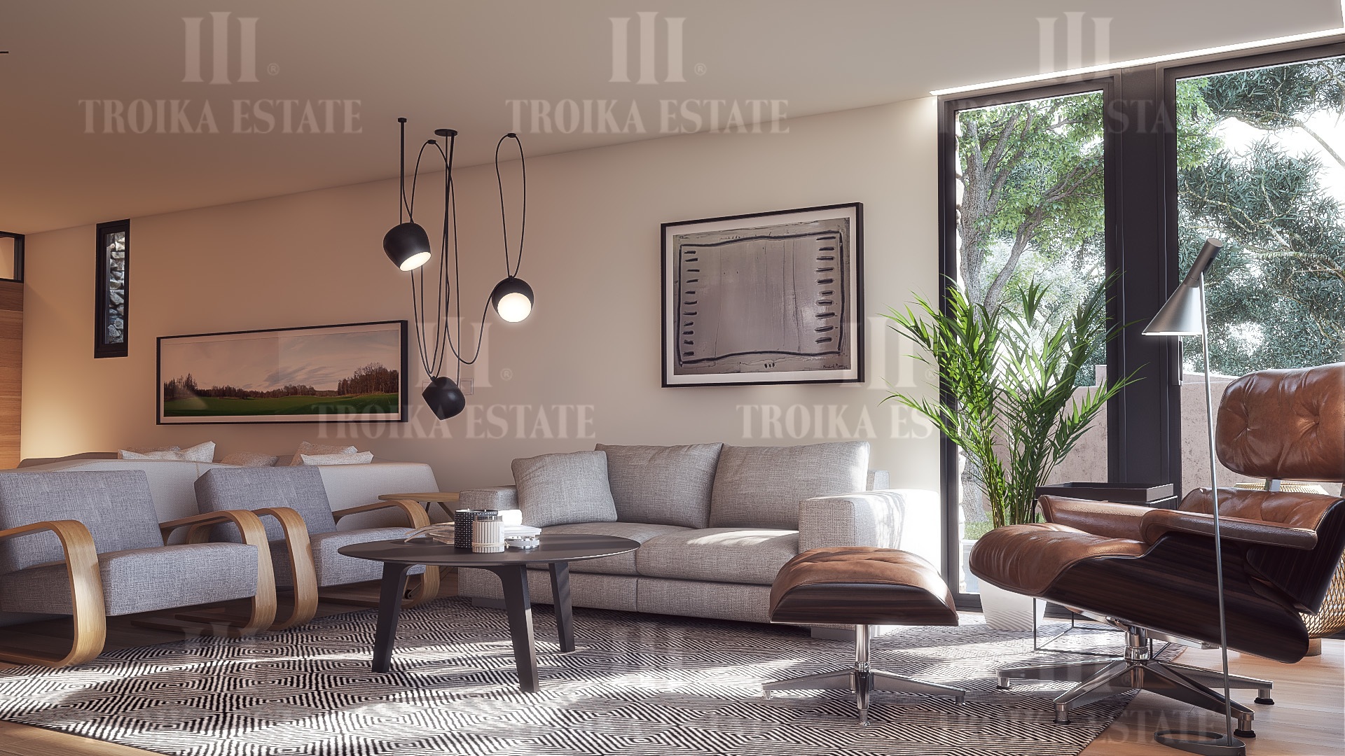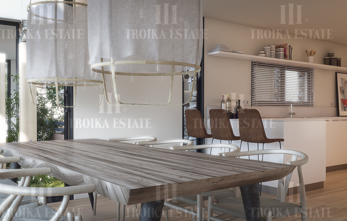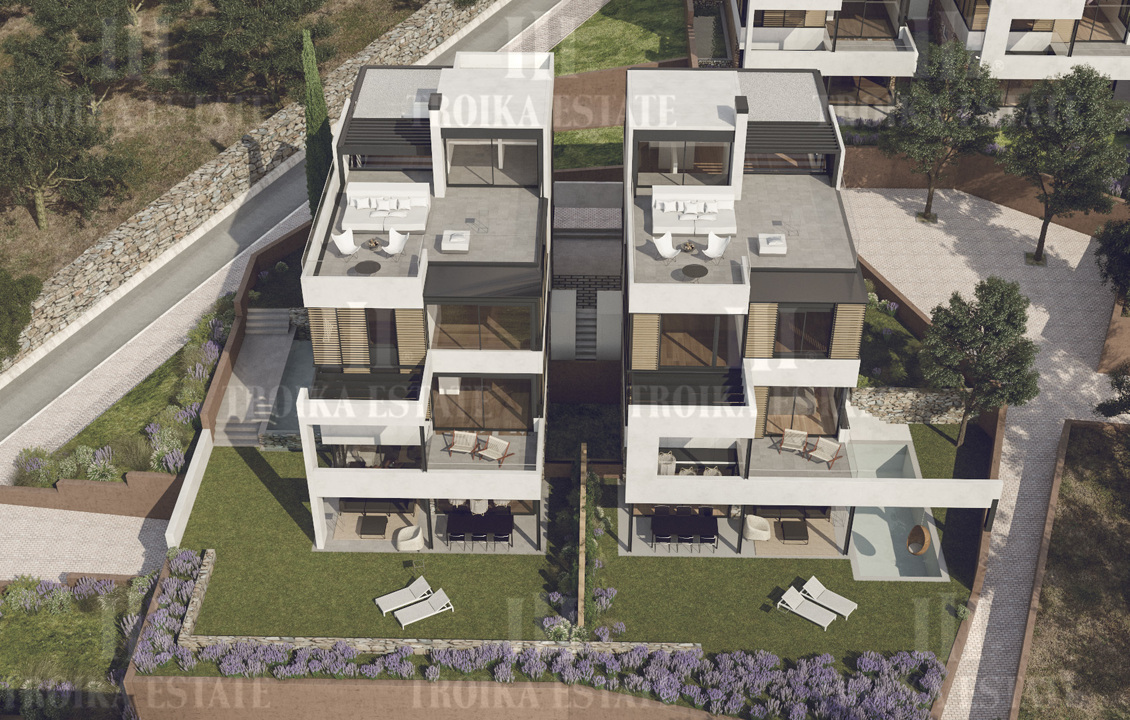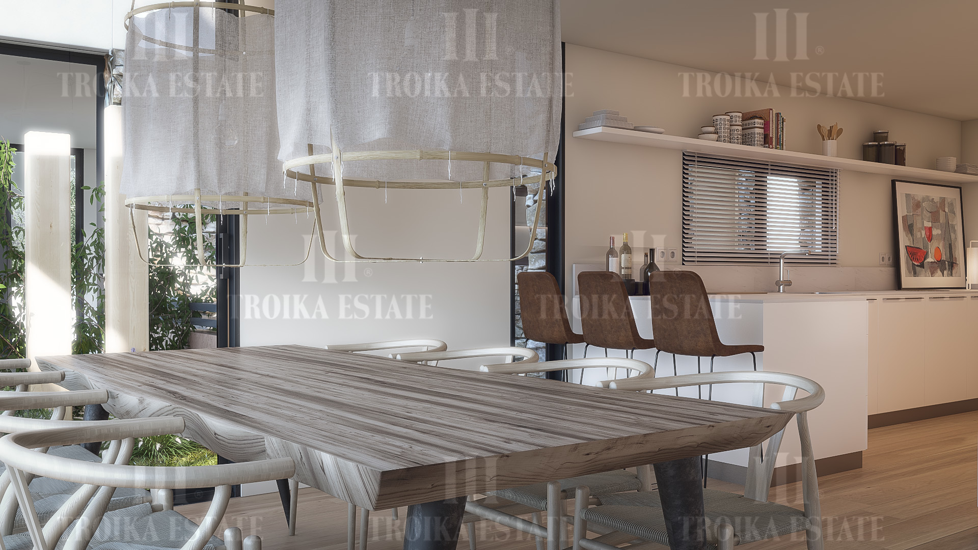 Вилла в современном стиле на охраняемой территории поселка. В дворе бассейн (2,75х8м). За счет оригинального рельефа земельного участка дом обладает уникальными видовыми характеристиками. Особое внимание создатели проекта уделили приватным территориям - они спланированы таким образом, что у будущего владельца будет абсолютно обособленный придомовый участок, спрятанный от посторонних глаз.