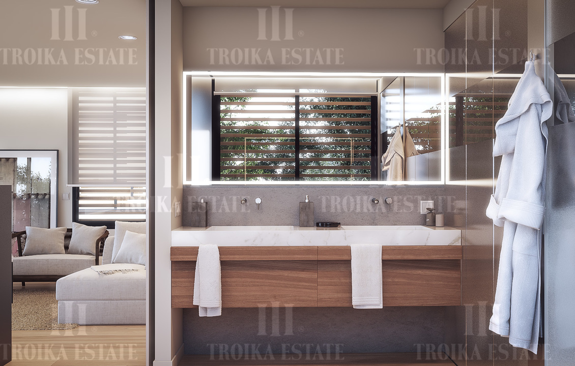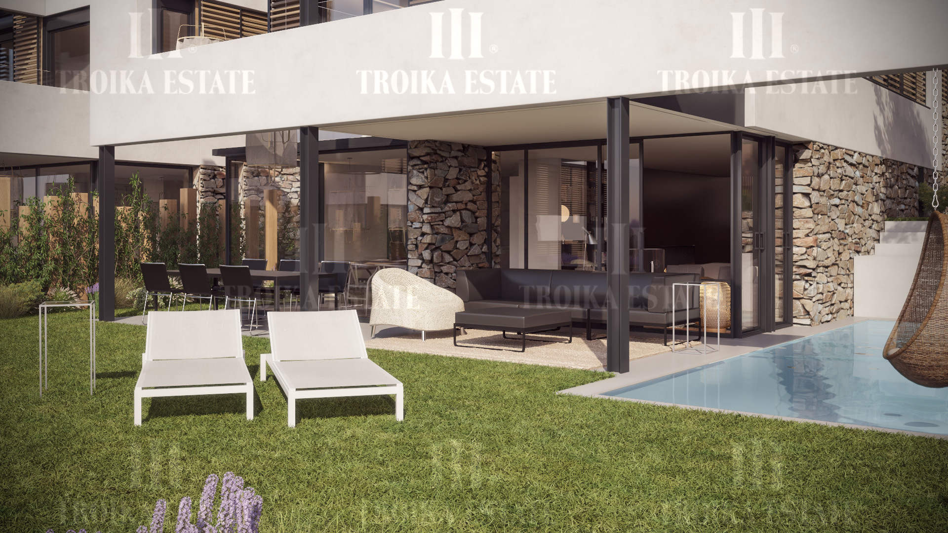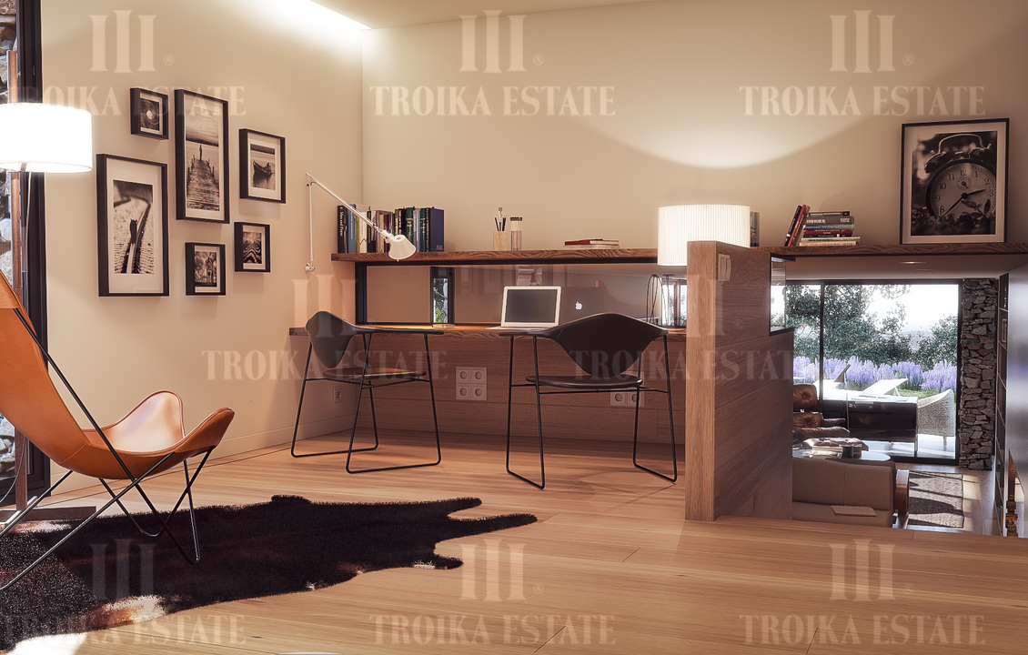 Вилла в современном стиле на охраняемой территории поселка. В дворе бассейн (3х9м). За счет оригинального рельефа земельного участка дом обладает уникальными видовыми характеристиками. Особое внимание создатели проекта уделили приватным территориям - они спланированы таким образом, что у будущего владельца будет абсолютно обособленный придомовый участок, спрятанный от посторонних глаз.