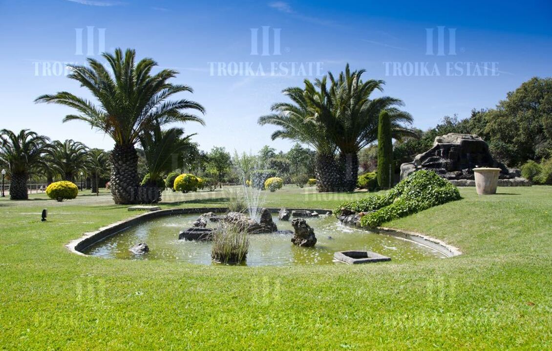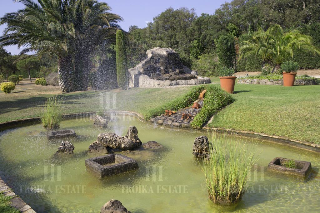 Вилла находится в окружении леса, с прекрасным ландшафтным дизайном. Площадь участка составляет 3 га. На территории разбит большой парк с фонтанами и цветниками, посажено большое количество взрослых пальм, что является редкостью для растительности Испании. Участок полностью огорожен.