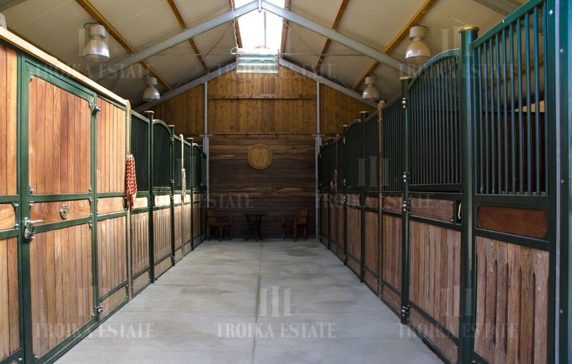 На территории расположена просторная, современная, прекрасно оборудованная конюшня на 6 лошадей с оборудованием для купания . Имеются специально оборудованные площадки для занятий конным спортом. А так же огороженная площадка для свободного выгула лошадей. Вольер для домашней птицы, где в настоящее время находятся куры несушки. На территории разбит фруктовый сад , где в 2014 г было посажено более 100 различных фруктовых деревьев, в дополнение к уже существующим, сад спланирован таким образом, что в любое время года в нем созревают минимум 3 вида фруктов. Так же имеется огород, где с успехом выращиваются свежие овощи.