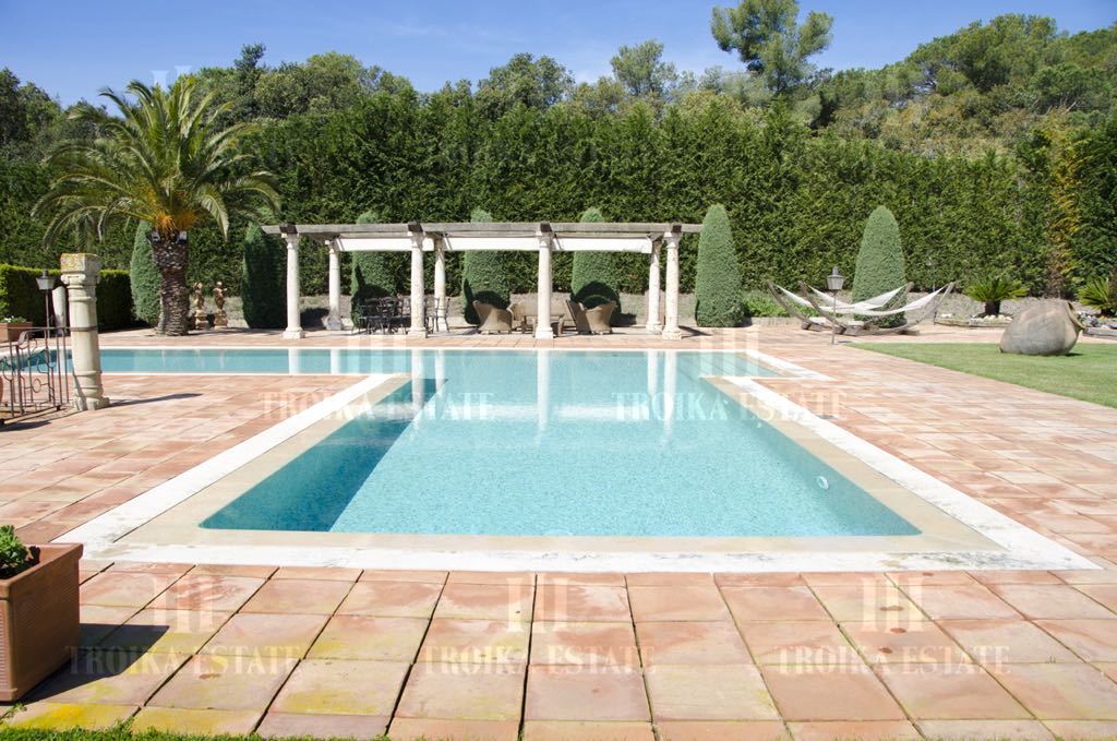 Жилая площадь достигает 370 кв.м. Выполнена рациональная планировка: большая кухня с обеденной зоной; плавно перетекающие в просторную гостиную с камином; винный погреб; кладовая; 2 ванных комнаты; 5 спален; постирочная; жилое помещение для прислуги с собственными с/у, оборудованная зона барбекю с великолепным видом на зеленый участок, бассейн 10х15 м с современной системой очистки воды, большой гараж. У бассейна оборудована зона отдыха с навесами, которые оснащены механизмом трансформации, так же имеется выделенная зона для массажных процедур на свежем воздухе, гамаки, шезлонги и вся необходимая садовая мебель.