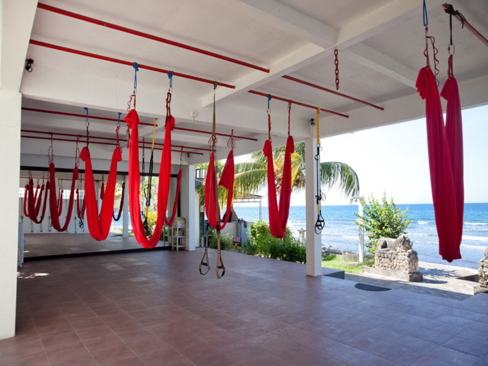 Спортивный зал площадью 100 кв.м оборудован ковриками для йоги / пилатеса, подушками для медитации, гантелями, гирями, скакалками, гамаками для йоги-антигравити, trx , веревками для айенгара-йоги. Есть открытая веранда 120 м² с видом на восход солнца для занятий йогой и утренних медитаций. Также в составе отеля есть ресторан индонезийской и европейской кухни, и SPA комплекс с разнообразными программами оздоровления. Вдоль берега Bondalem Beach Club пролегает красивый коралловый риф с богатым подводным миром.